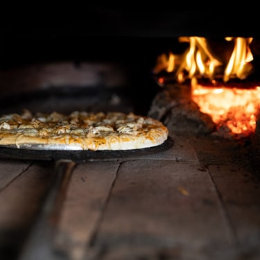 La pizza 'Chinoise', cuisson au feu de fois est notre préférée. La famille est abonnée à PL Andranomena.